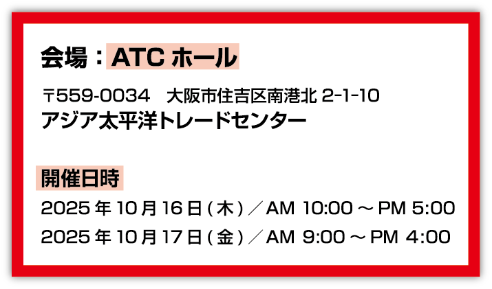 お知らせ10月16日・17日に南港ATCホールで開催される