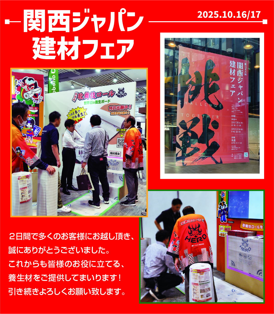 お知らせ本日、南港ATCホールで行われた「関西ジャパン建材フェア」最終日でした。